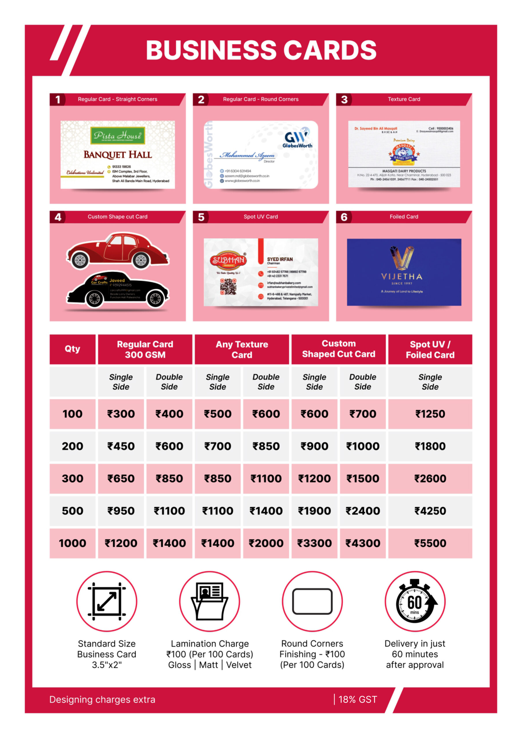 - Business Cards (Single or Double-sided)